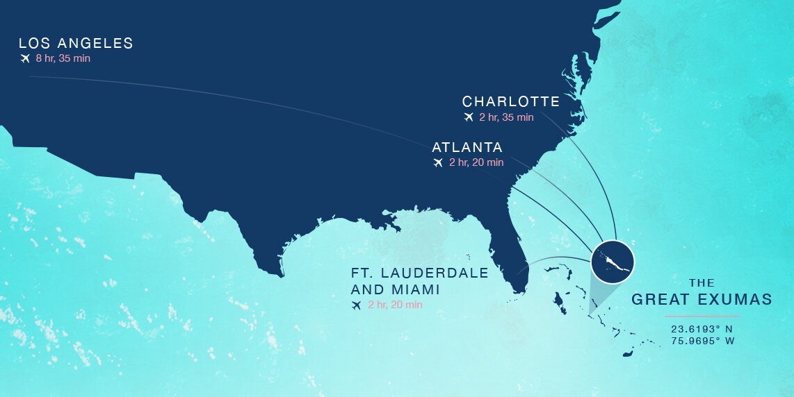 Getting to Great Exuma is now easier than ever. Direct flights to Exuma International Airport (GGT) are available from several U.S. cities, as well as Canada.