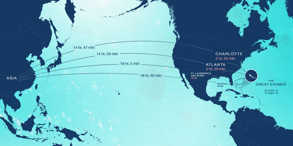 Once you arrive on the island, Grand Isle Resort & Residences is located about 20 minutes from Exuma International Airport (GGT) by car. Our team can coordinate transfers to the property. Airport transfers are $35 each way for two guests and $4 for each additional guest. Contact the concierge to arrange your transfer.